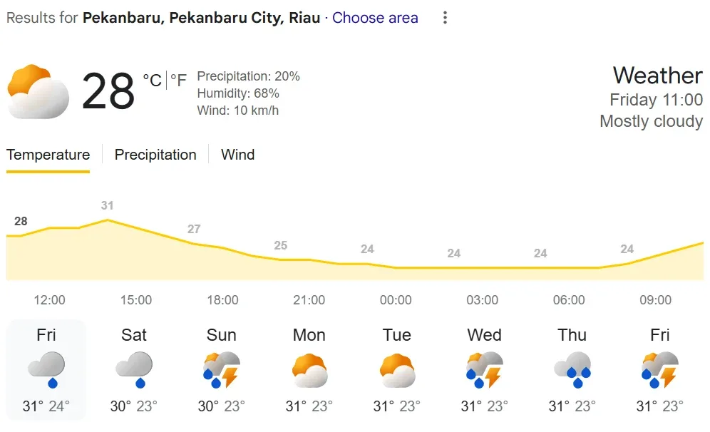 Dari sisi suhu, BMKG mencatat temperatur udara di Riau berkisar antara 23 hingga 33 derajat Celsius, dengan tingkat kelembapan cukup tinggi, mencapai 55 hingga 98 persen. Sementara itu, angin bertiup dari arah utara hingga timur laut dengan kecepatan sekitar 10 sampai 30 kilometer per jam.