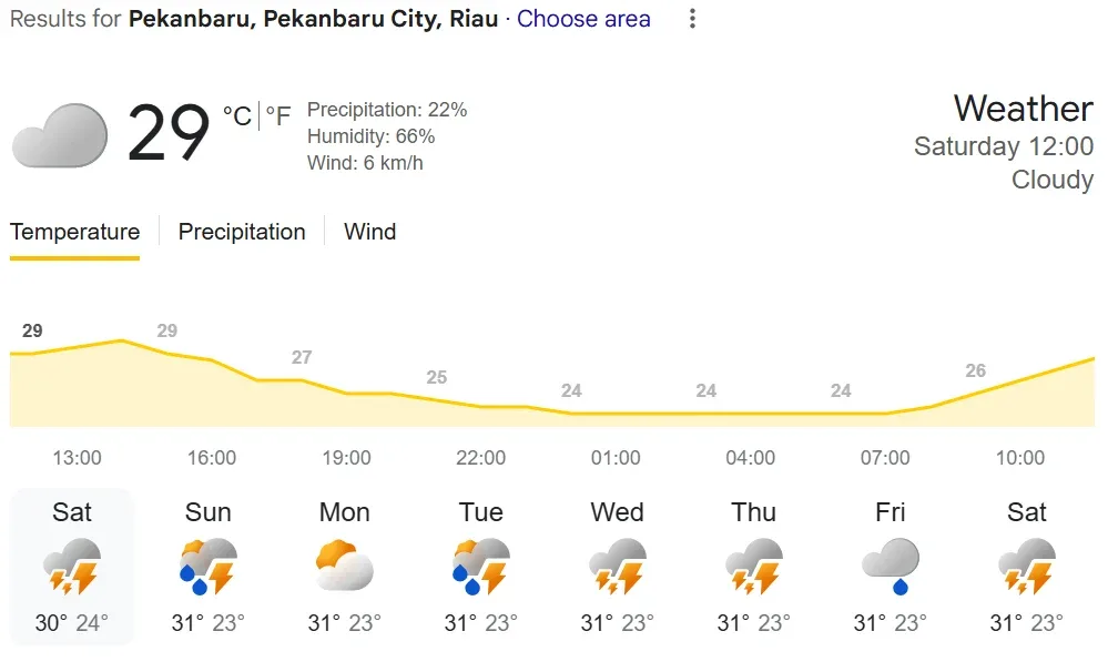 “Kami mengimbau masyarakat agar waspada terhadap hujan dengan intensitas sedang hingga lebat yang dapat disertai petir dan angin kencang. Kondisi ini berpeluang terjadi di wilayah Rokan Hulu, Kampar, Kuantan Singingi, Pelalawan, serta Indragiri Hilir, khususnya pada sore hingga malam hari,” jelasnya.