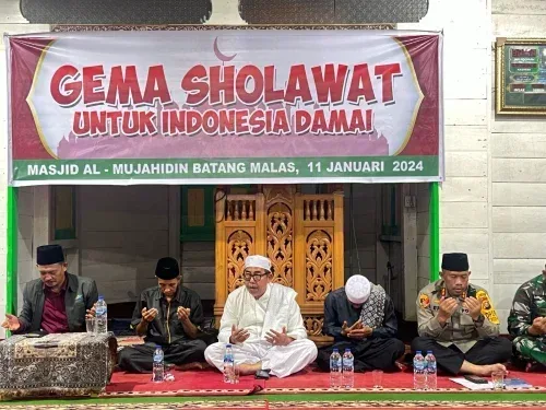 Meranti, Taktiknews.com – Kapolres Kepulauan Meranti AKBP Kurnia Setyawan,SH.,S.I.K., mewakili Kapolda Riau Irjen Pol Muhammad Iqbal menghadiri acara Gema Sholawat Indonesia Damai yang digelar di Masjid Al-Mujahidin Desa Batang Malas Kecamatan Tebing Tinggi Barat Kabupaten Kepulauan Meranti, Kamis (11/01/2024) malam.