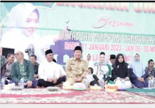 Rokan Hulu, TaktikNews.com – Bupati Rokan Hulu (Rohul) H. Sukiman bersama Ketua TP PKK Rohul menghadiri Pengajian Umum yang digelar Pemdes Sialang Rindang. Ribuan jamaah, warga NU dan masyarakat tumpah ruah mendengarkan tausiyah agama Ustadzah Mumpuni Handayayekti dari Cilacap, Jawa Tengah, yang dipusatkan Lapangan Pendopo, Desa Sialang Rindang, Kec. Tambusai, Rohul, Rabu (11/1/2023).