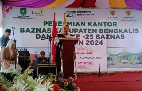 Apresiasi tersebut disampaikan Bupati Kasmarni saat meresmikan gedung baru Baznas yang beralamat di Kelapapati Darat, Kecamatan Bengkalis, Rabu 17 Januari 2024.
