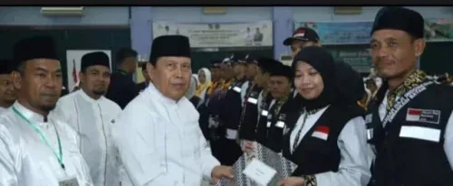 Usai dengan rangkaian sambutan, Bupati Sukiman secara resmi melepas keberangkatan para Jamaah ditandai dengan penyerahan Bendera Merah Putih dilanjutkan dengan ber salam salaman.