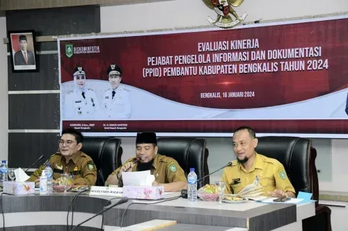 Bengkalis, Taktiknews.com – Pemerintah Kabupaten (Pemkab) Bengkalis melalui Dinas Komunikasi, Informatika dan Statistik Kabupaten Bengkalis menggelar rapat evaluasi kinerja Pejabat Pengelola Informasi dan Dokumentasi (PPID) Pembantu Kabupaten Bengkalis Selasa, 16 Januari 2024 di Ruang Rapat Hang Jebat, Lantai 2 Kantor Bupati Bengkalis.