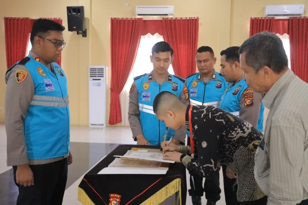 Kegiatan ini juga terhubung secara virtual dengan jajaran Polda Riau, di mana Kapolda Riau, Herry Heryawan, memimpin langsung jalannya prosesi dari tingkat provinsi.