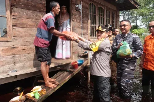 “Hampir seluruh rumah warga terdampak banjir termasuk rumah ibadah dan sekolah. Warga tidak dapat beraktivitas sebagaimana mestinya. Untuk itu, kita melakukan peninjauan langsung kondisi banjirnya,” kata wakapolres.