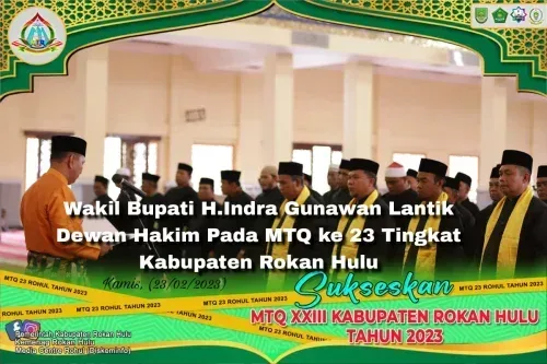 Rohul, TaktikNews.Com – 64 Orang yang terdiri dari Dewan Hakim, Majelis Hakim dan Pembantu Hakim pada Musabaqoh Tilawatil Quran (MTQ) ke 23 Tingkat Kabupaten Rokan Hulu Secara Resmi Dilantik Wakil Bupati Rokan Hulu H.Indra Gunawan, di Masjid Agung Islamic Center Pasir Pengaraian Kabupaten Rokan Hulu, Kamis (23/2/2023).
